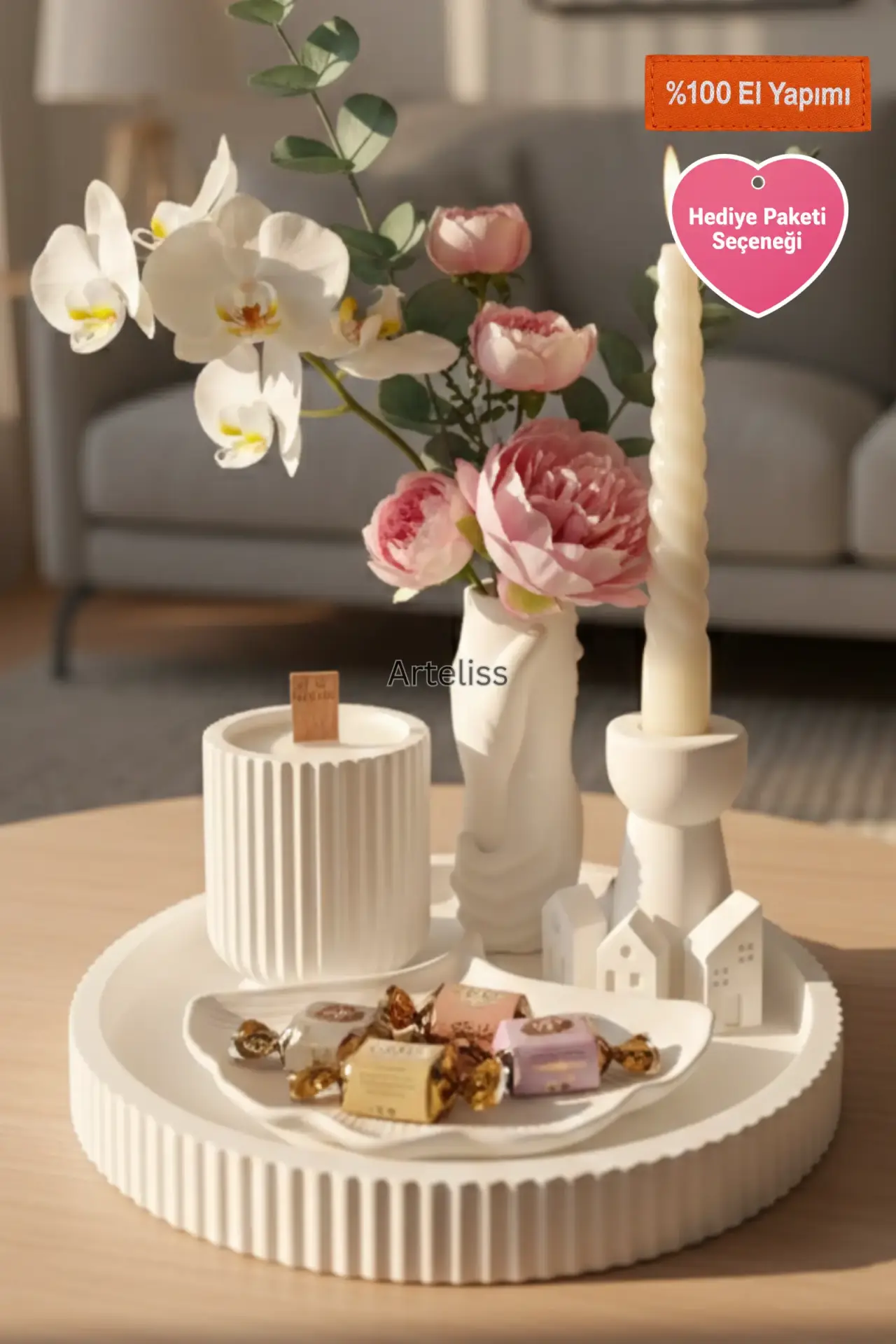 Sevdiklerinize şık bir ambiyans hediye etmek isterseniz, sipariş aşamasında Ücretsiz Hediye Paketi seçeneğini seçerek bu özel modern ev dekorasyon seti tasarımını onlara ulaştırabilirsiniz.