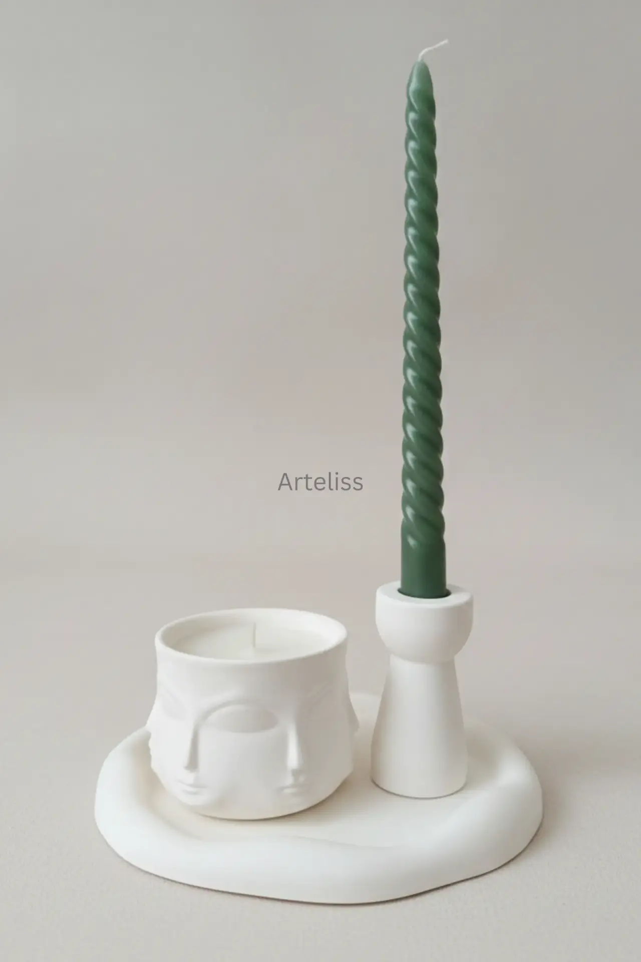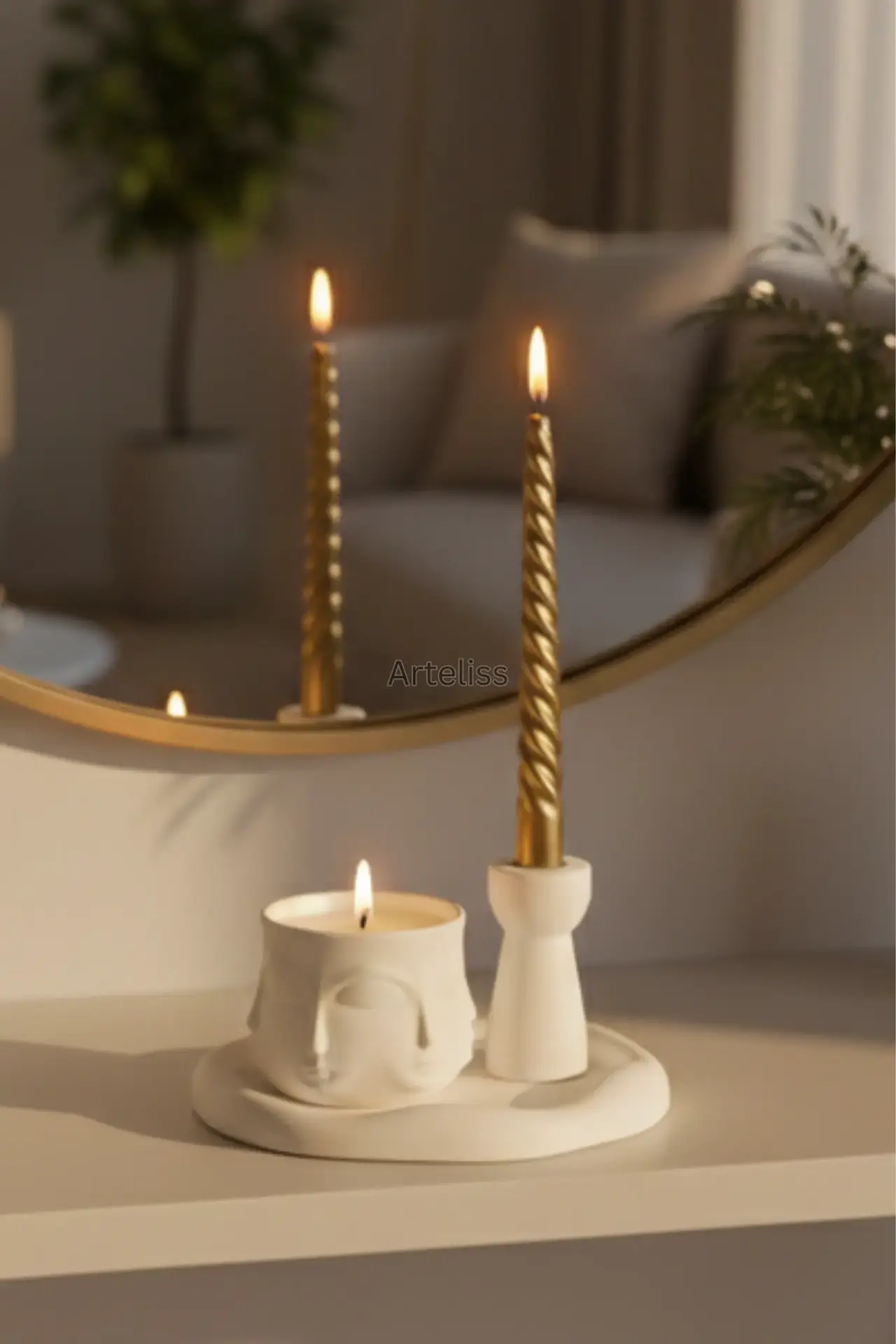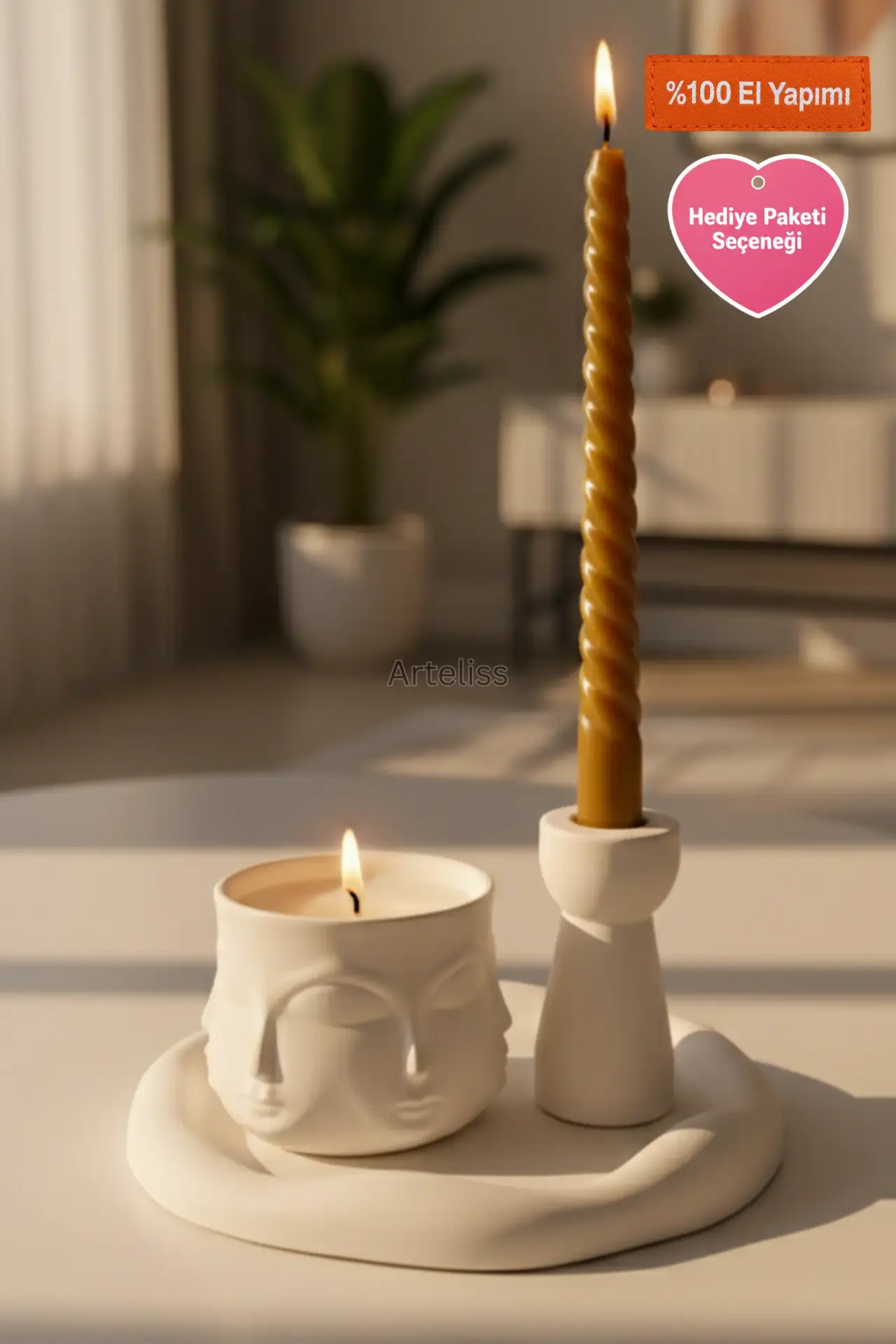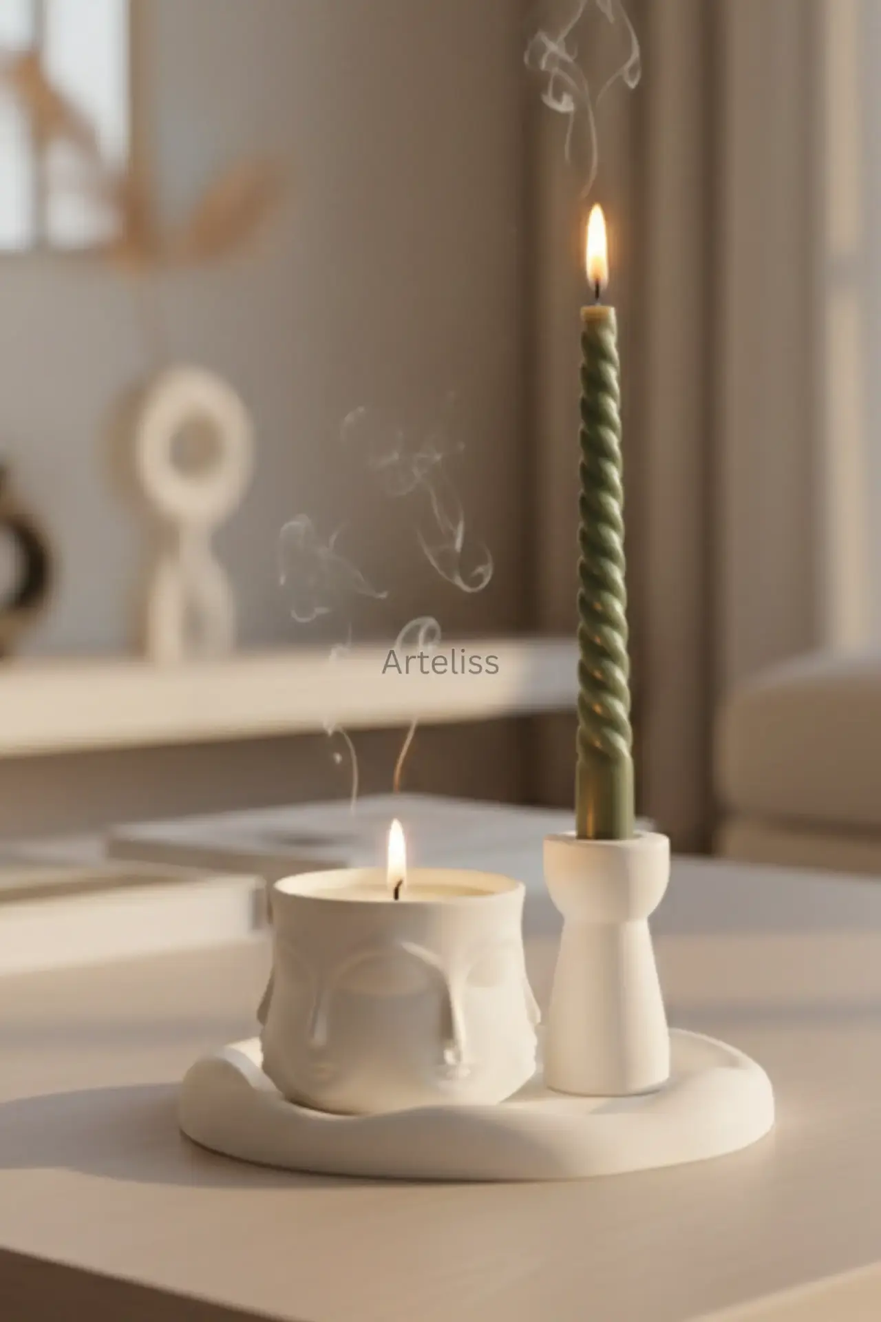 Arteliss® Amber Mist Modern Ev Dekorasyon Seti, yaşam alanlarınızda modern bir odak noktası oluşturmak için tasarlanmıştır. Amber kokulu Buddha mum, burgu şamdan ve bohem sunum tablasından oluşan bu modern ev dekorasyon seti; kitaplık, sehpa, konsol veya TV ünitesi üzerinde kullanıma uygundur. Saf beyaz rengi ve pürüzsüz dokusuyla tüm dekorasyon stillerine mükemmel uyum sağlar.