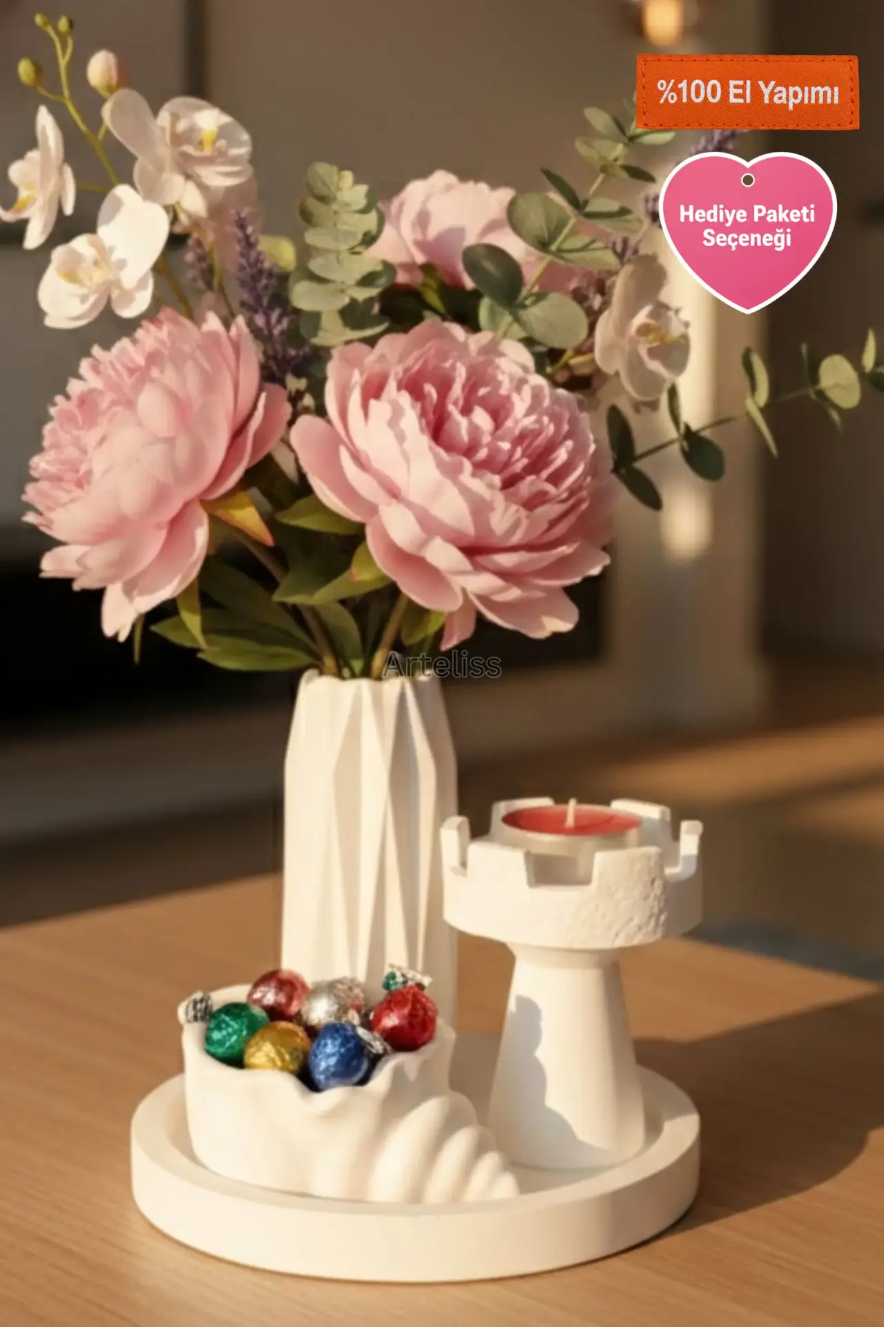 Sevdiklerinize mimari zarafete sahip bir sürpriz yapmak isterseniz, sipariş aşamasında Ücretsiz Hediye Paketi seçeneğini işaretleyerek bu özel modern ev dekorasyon seti modelini onlara ulaştırabilirsiniz.