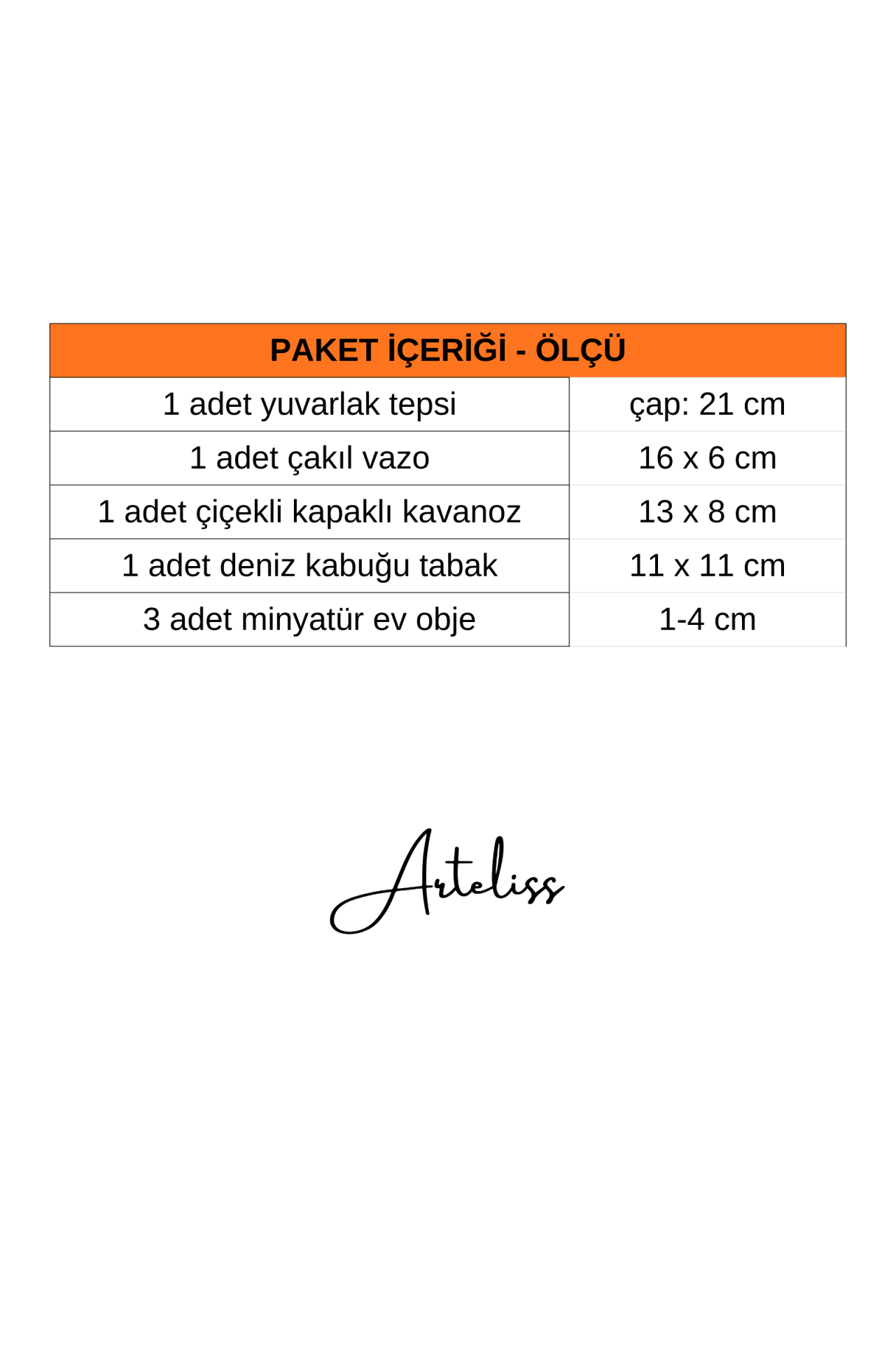 Set içerisinde yer alan istiridye tabak ve küçük ev figürleri, yaşam alanlarınızda huzurlu bir köy ambiyansı yaratır. Her türlü mobilya stiline uyum sağlayan bu çok parçalı iskandinav ev aksesuarı, kapaklı kavanozu sayesinde takılarınız veya küçük eşyalarınız için şık bir saklama alanı sunar. Çakıl vazonun organik formlarıyla birleşen bu iskandinav ev aksesuarı grubu, evinizin her köşesinde ferah ve modern bir dokunuş sergilemek için idealdir. Doğanın sakinliğini evine taşımak isteyenler için bu iskandinav ev aksesuarı tasarımı, imza bir parça niteliğindedir.