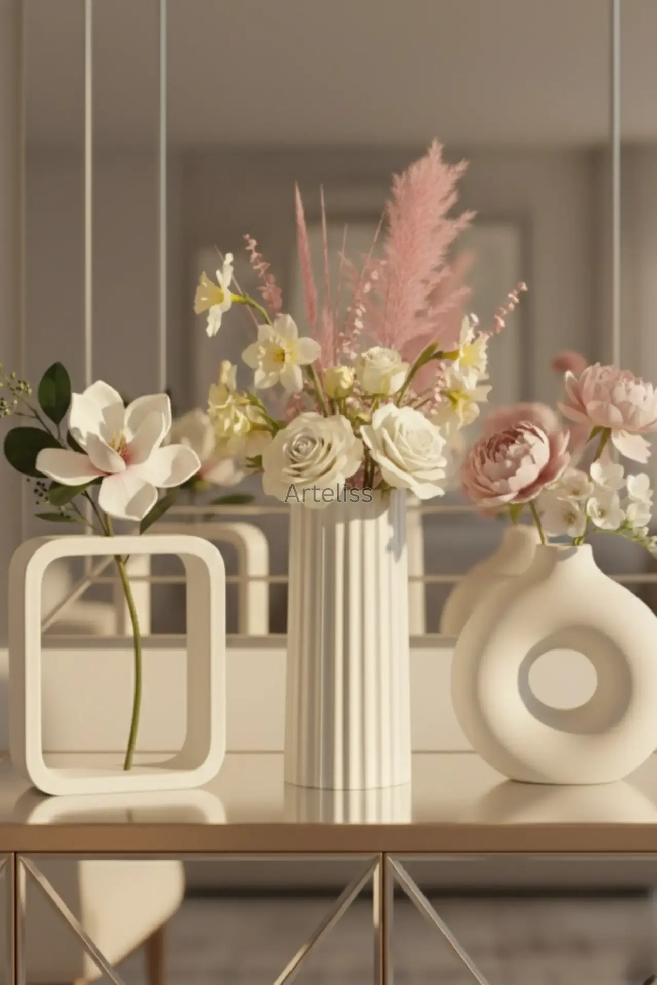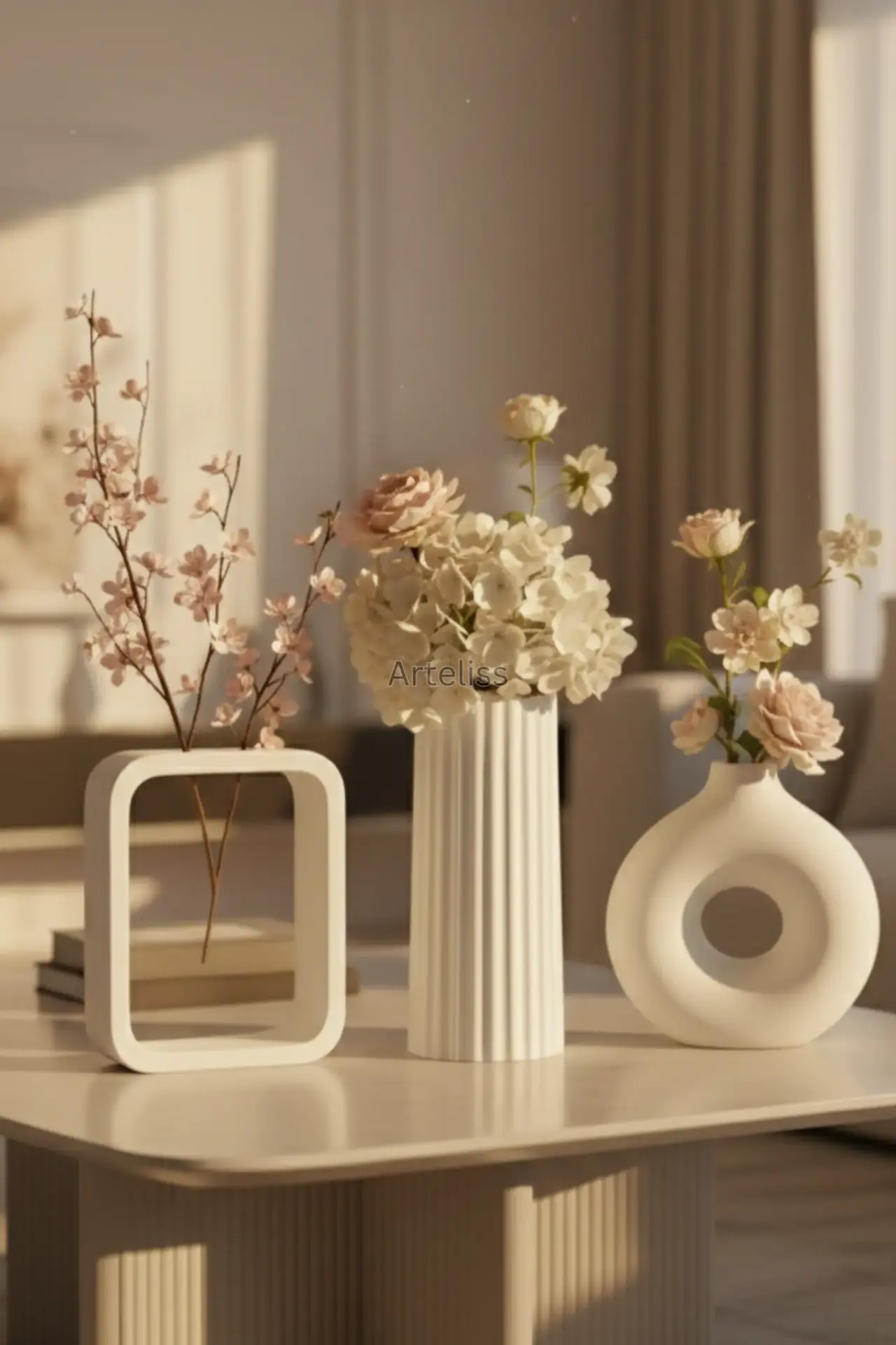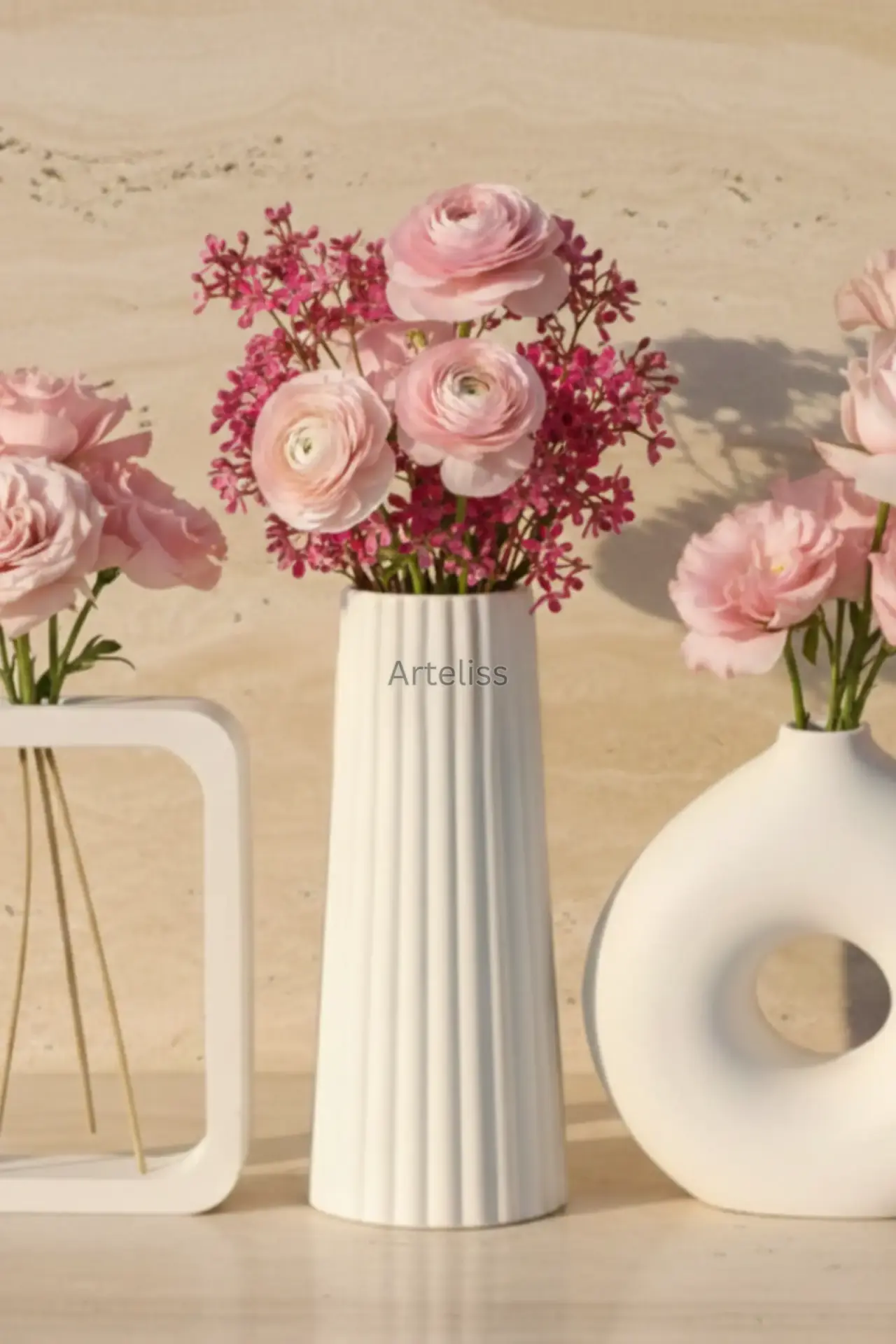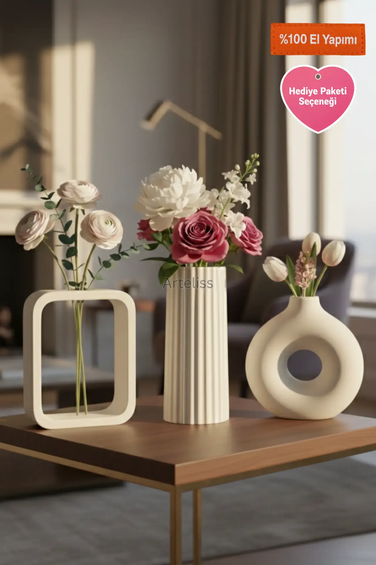 Arteliss® Boho Concept İskandinav vazo seti, bohem ruhun özgürlüğünü modern geometrik formlarla birleştirerek yaşam alanlarınızda dengeli bir estetik oluşturur. Evinizde çağdaş bir sanat galerisi havası yaratmak için tasarlanan bu iskandinav vazo grubu; çerçeve formlu minimalist kare parça, zarafeti simgeleyen yüksek silindir ve ikonik halka figüründen oluşur. Mat beyazın sakinleştirici dokusu, bu tasarımı her türlü iç mekan stiliyle uyumlu kılar.