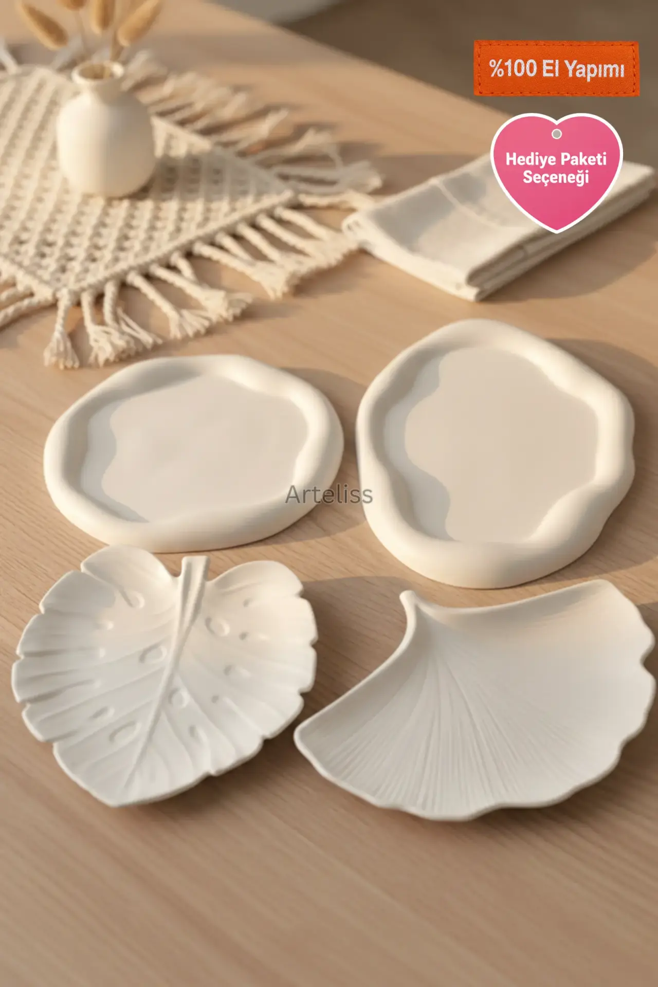 Ekolojik & Benzersiz: %100 el yapımı ve doğada tamamen çözünebilir içeriğe sahip olan bu set, tek tek elde döküldüğü için hafif doku farklılıkları gösterebilir. Bu doğal varyasyonlar, sahip olduğunuz dekoratif sunum tabak tasarımını "tek ve benzersiz" kılar.