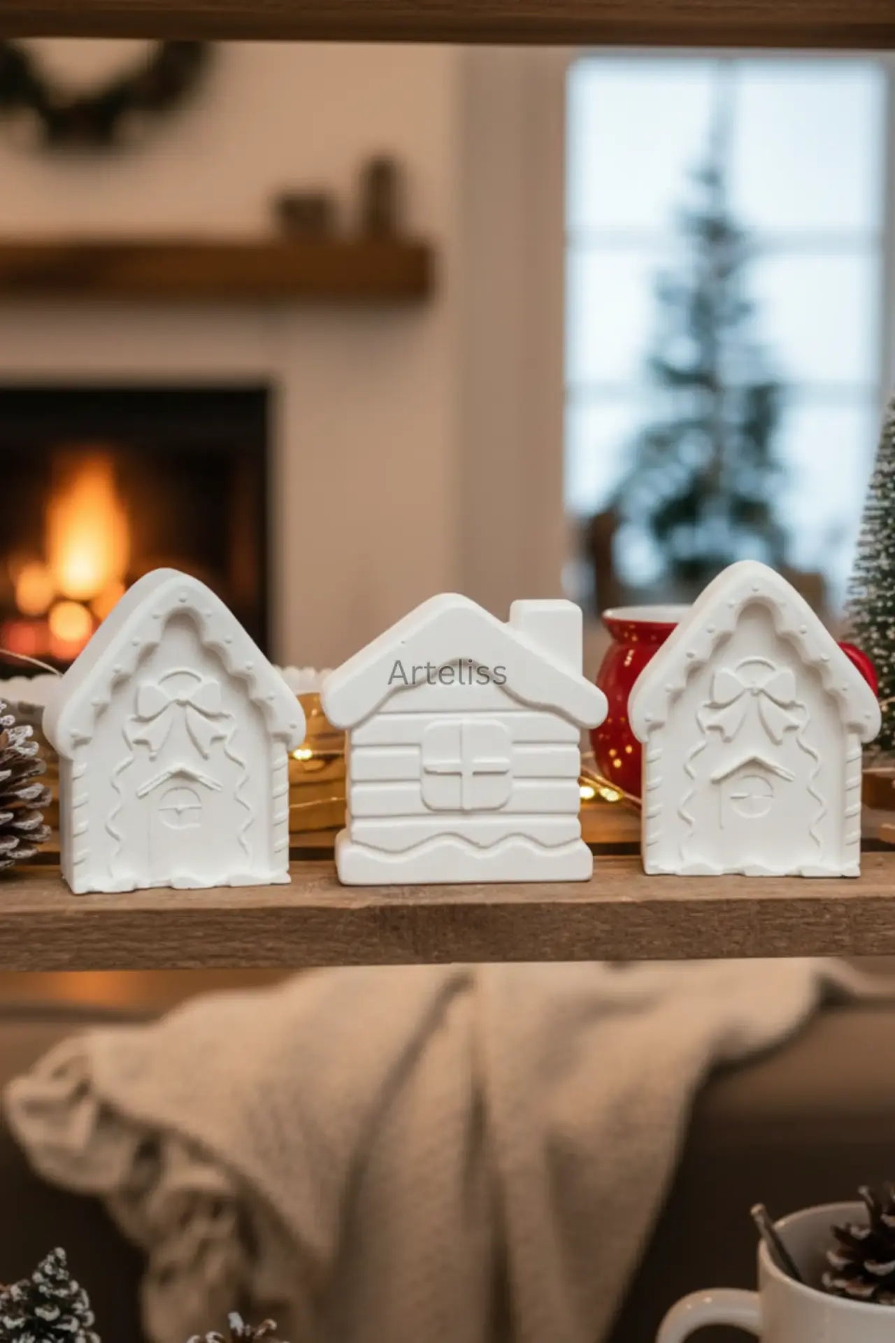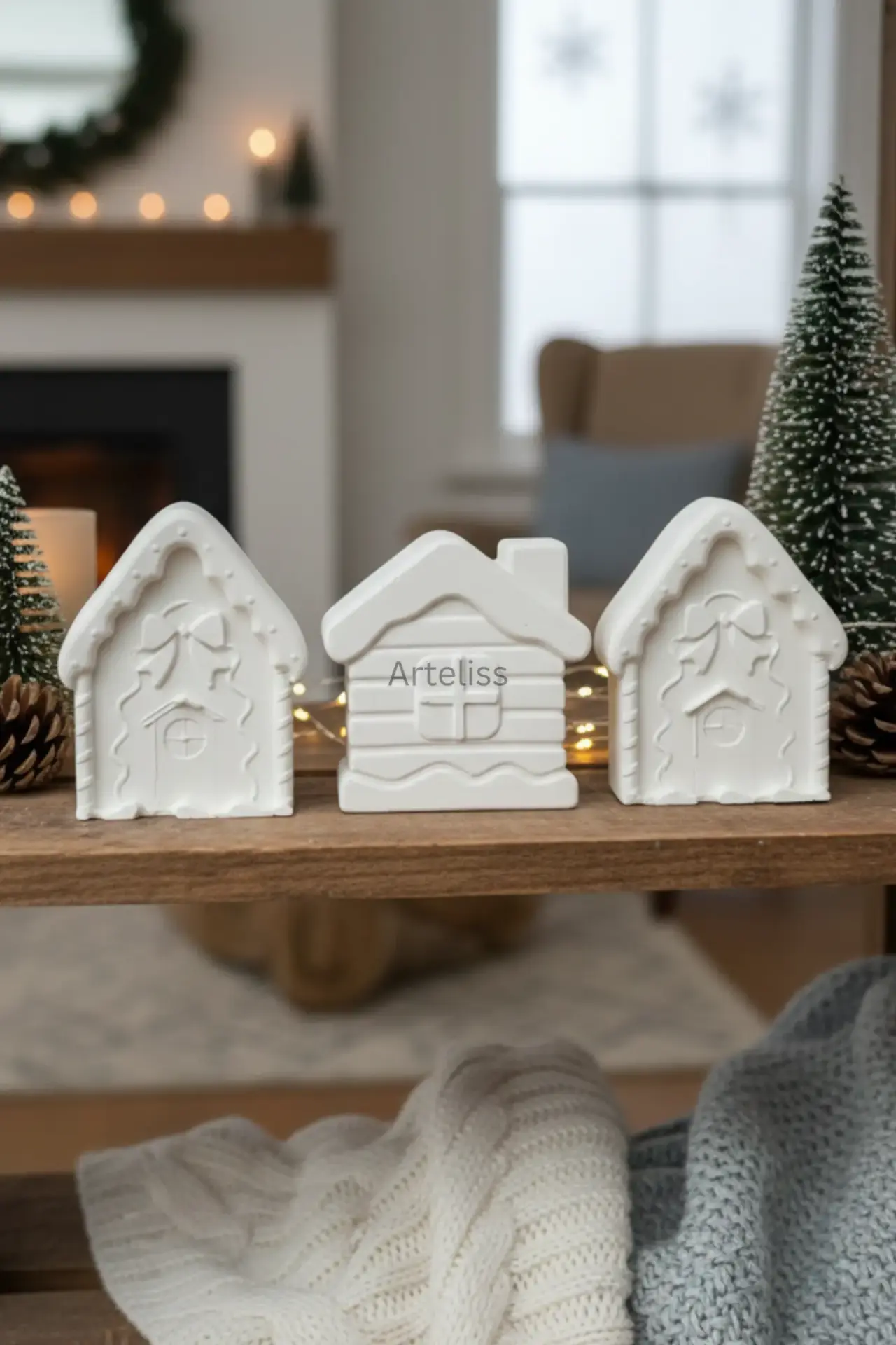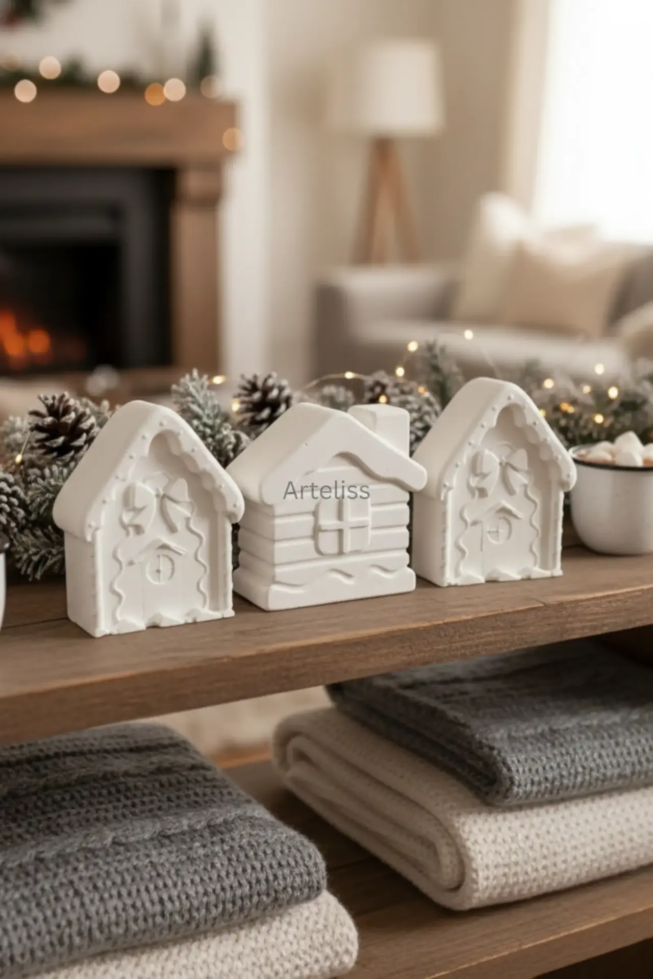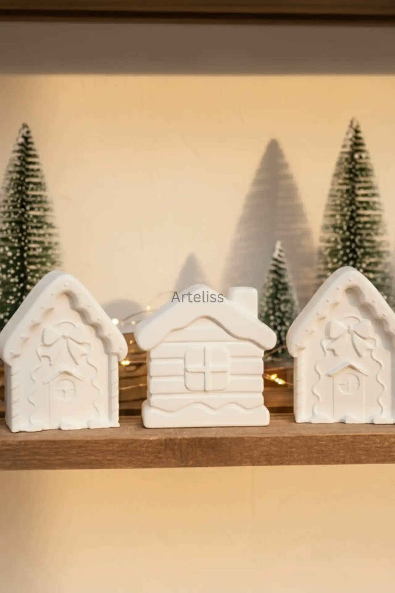 Arteliss® Canvas Village Kış Dekorasyonu obje seti, yaratıcılığını yaşam alanlarına yansıtmak isteyenler için özel olarak tasarlandı. Özgün bir kış dekorasyonu kurgulamak isteyenlere hitap eden bu set; ikisi süslemeli (fiyonklu) ve biri kütük ev formundaki üç farklı minyatür figürden oluşur. Pürüzsüz beyaz dokusuyla dikkat çeken bu evler, hem minimalist bir obje olarak sergilenebilir hem de hobi amaçlı boyanmaya uygundur.