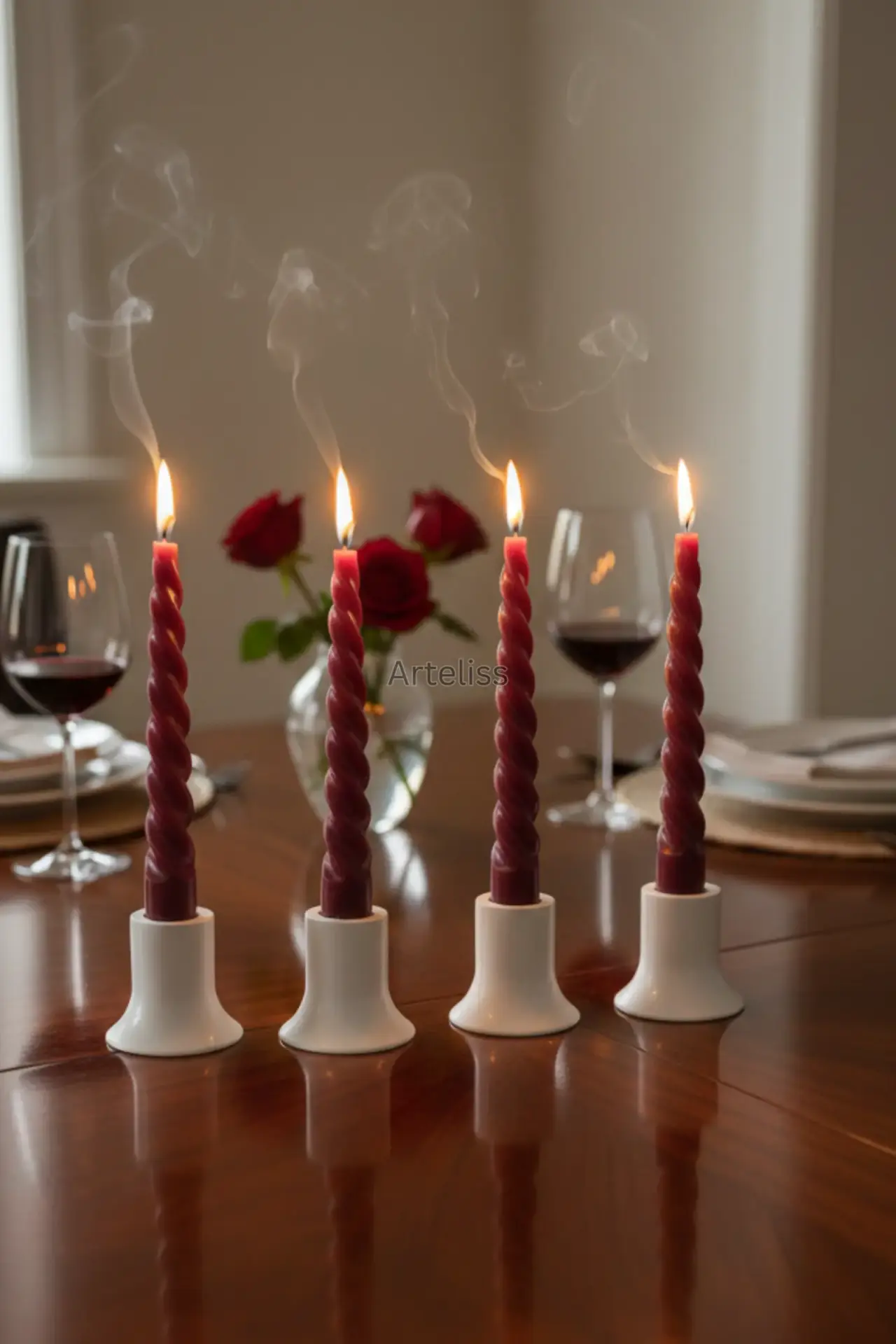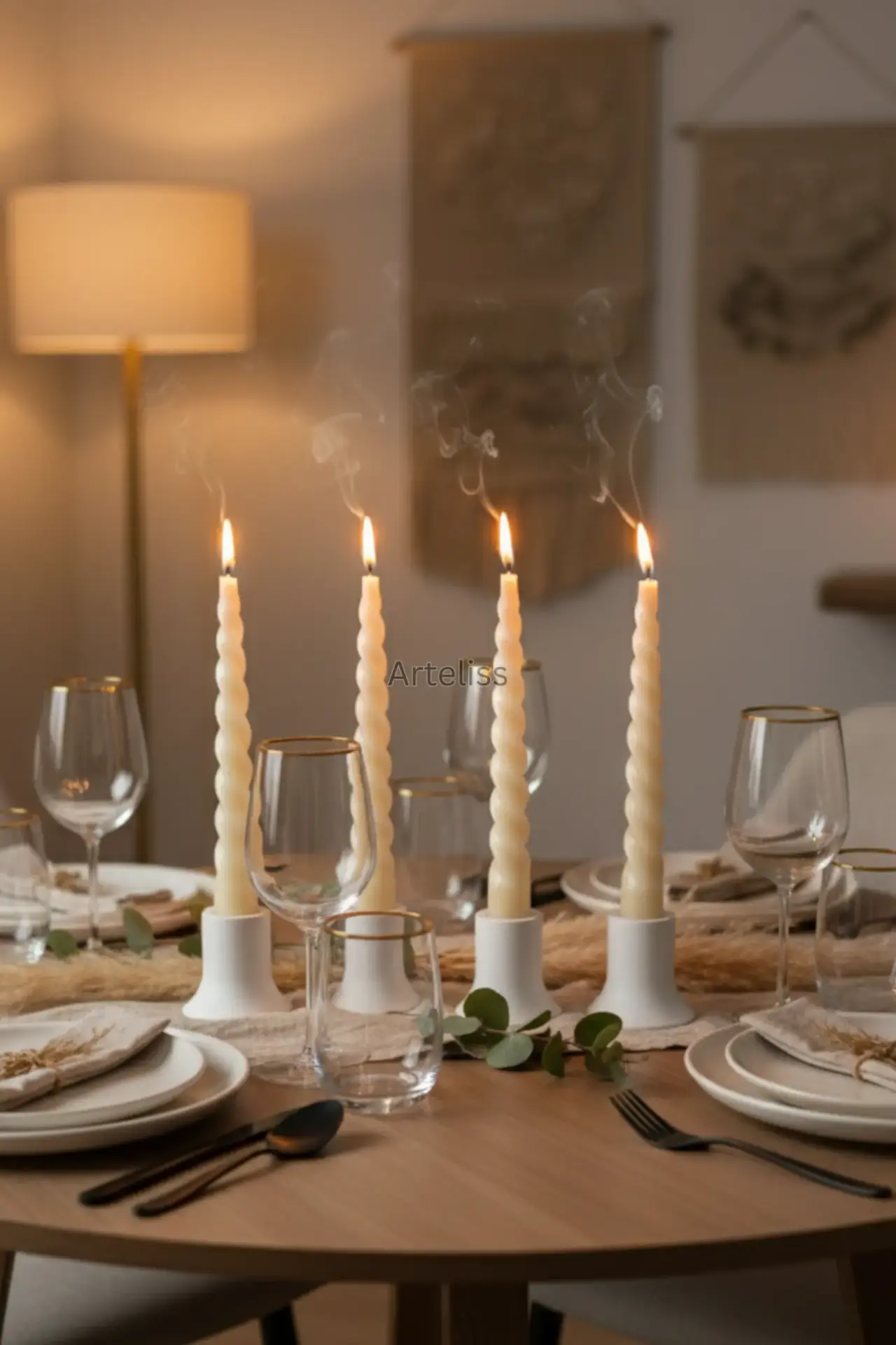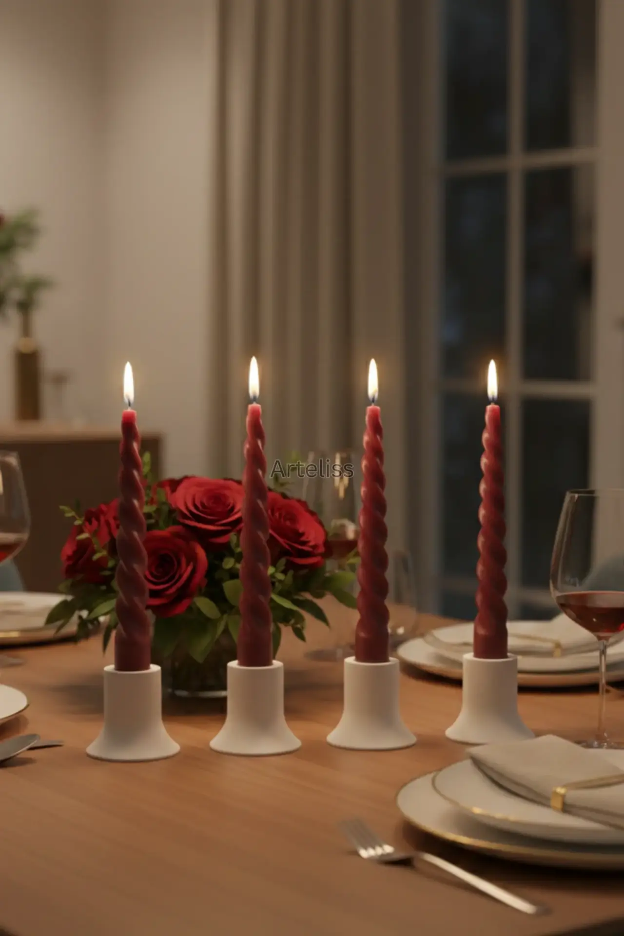 Arteliss® Elegant Glow serisi, dört adet minimalist parçadan oluşarak yemek masaları ve özel davet sofralarında zarif bir aydınlatma odağı oluşturmak için tasarlanmıştır. Bu dekoratif mini şamdan seti, 2 cm çapındaki standart şamdan mumlarıyla tam uyum sağlarken, kompakt yapısı sayesinde konsol ve raf dekorasyonlarında da estetik bir bütünlük sunar.