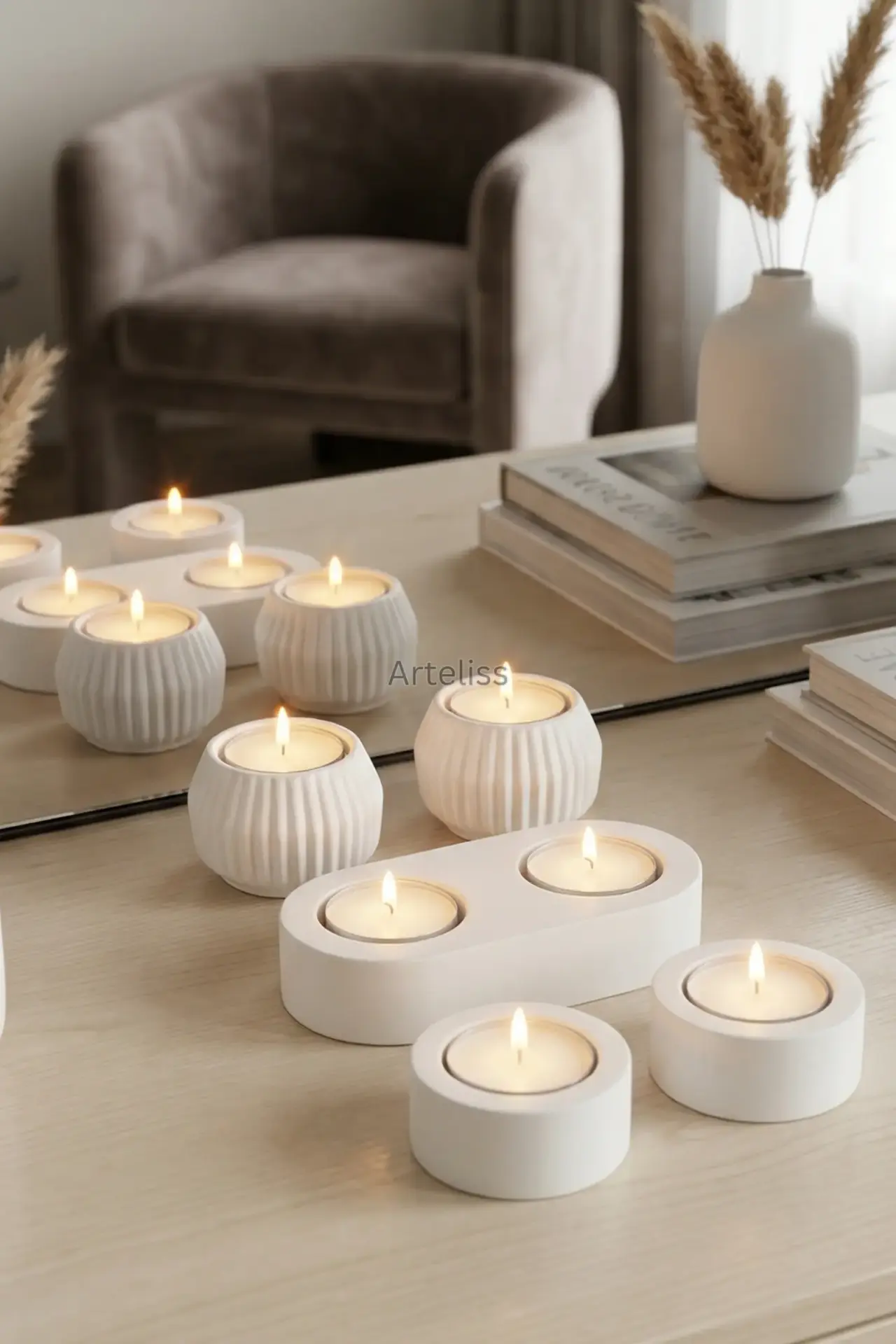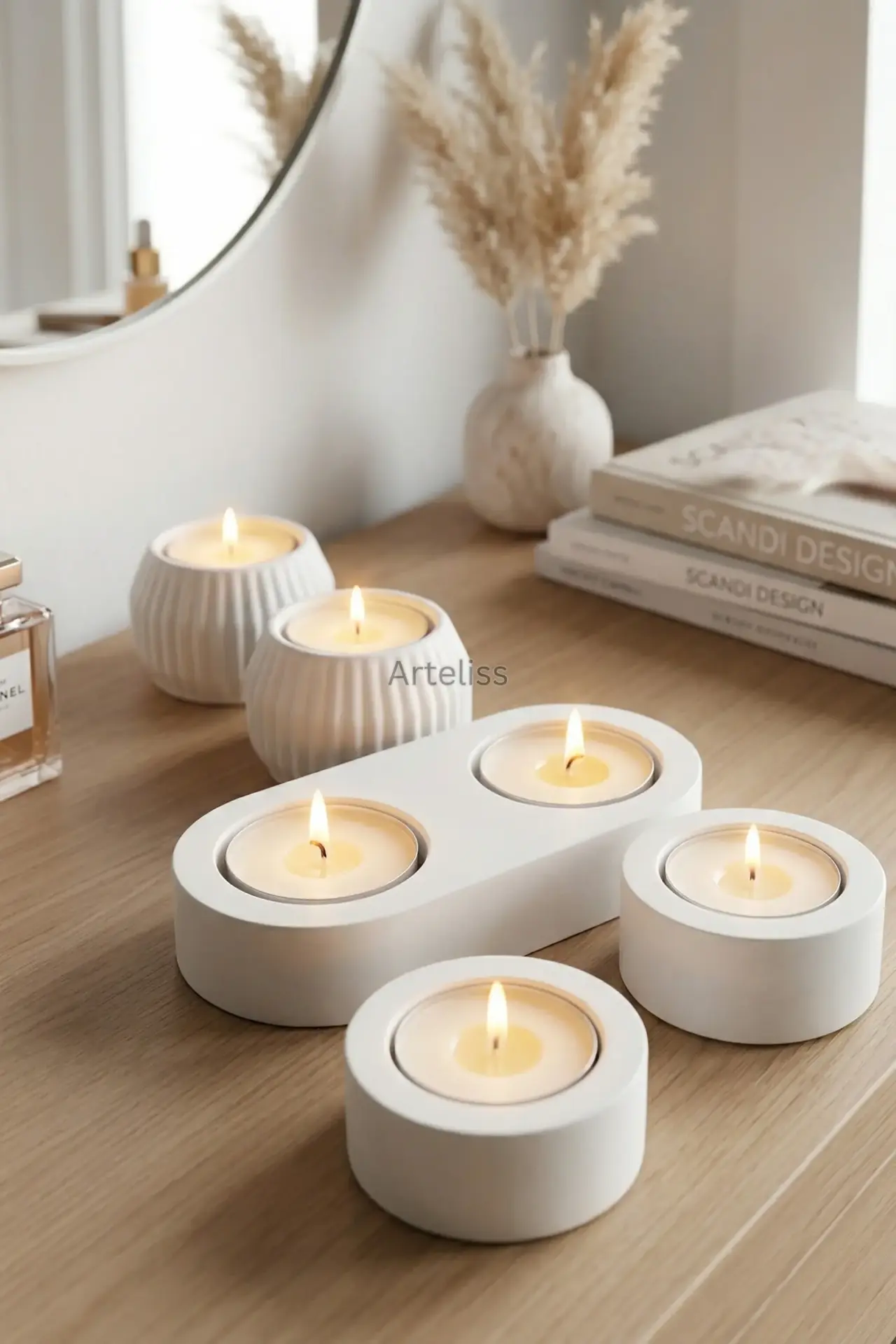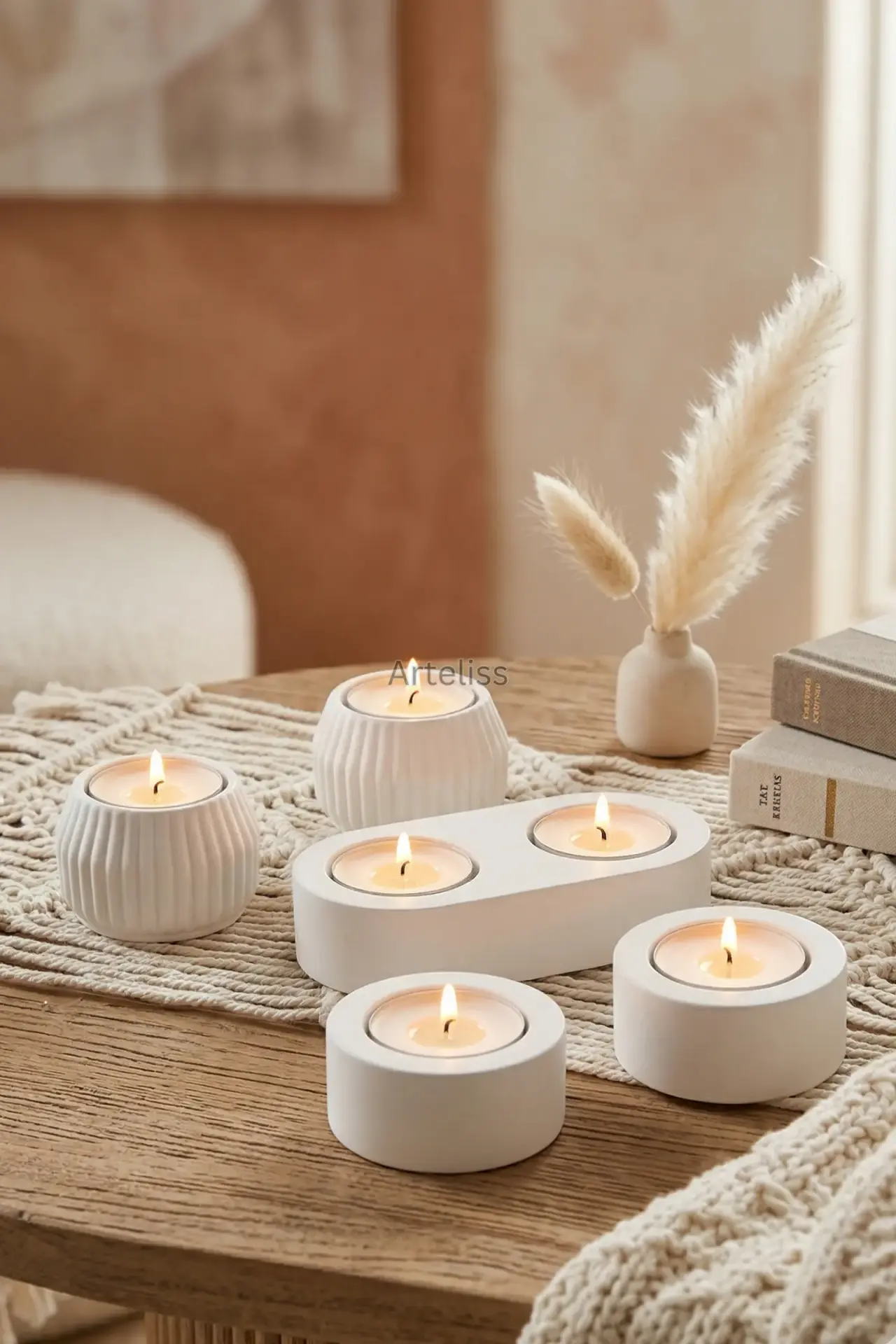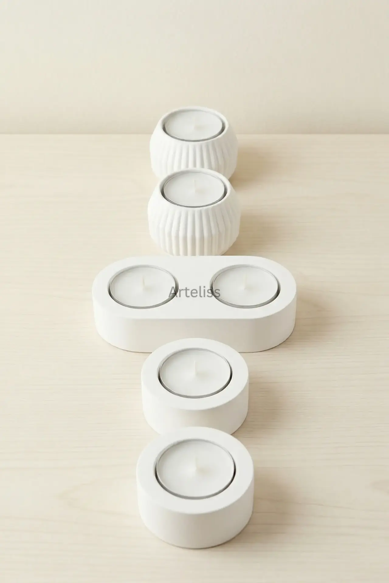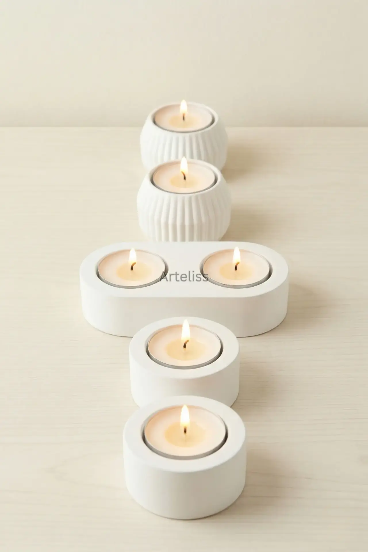 Arteliss® Glow Aura koleksiyonu, ışığın en saf halini modern ve minimalist formlarla yaşam alanlarınıza taşır. Evinizde dingin ve sıcak bir ambiyans yaratmak için tasarlanan bu Dekoratif Mumluk Seti; çizgili dokulu küre formlar, yalın silindir parçalar ve ikili oval stanttan oluşan beş seçkin parçadan meydana gelir. Mat beyazın zamansız zarafetini taşıyan bu set, her türlü dekorasyon stiline kusursuzca uyum sağlar.