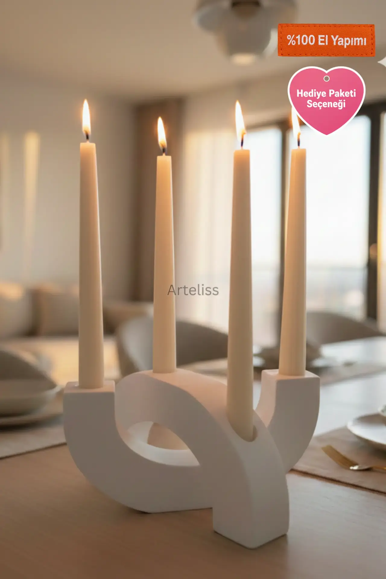 Ekolojik & Benzersiz: %100 el yapımı ve doğada tamamen çözünebilir içeriğe sahip olan bu set, tek tek elde döküldüğü için hafif doku farklılıkları gösterebilir. Bu doğal varyasyonlar, sahip olduğunuz kemerli büyük şamdan tasarımını "tek ve benzersiz" kılar.