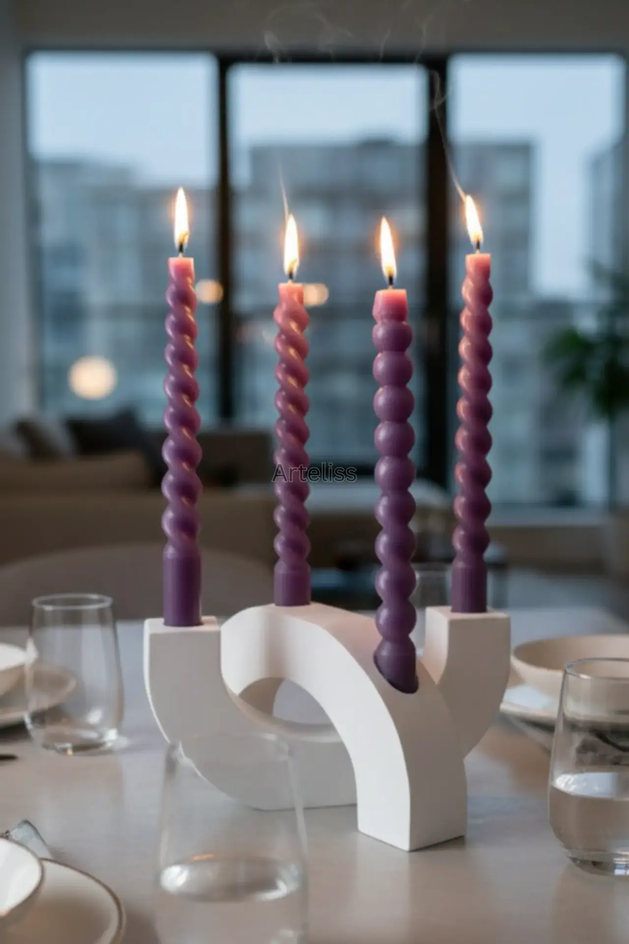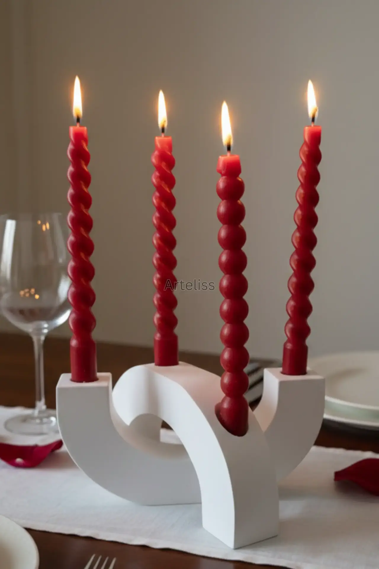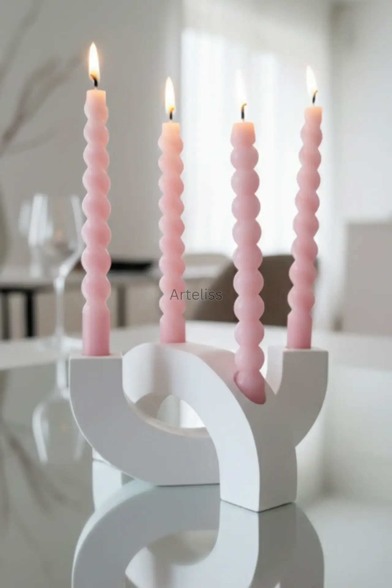 Arteliss® Grand Arch şamdan, birbirini tamamlayan iki devasa formdan oluşarak yemek masaları ve konsol dresuarları üzerinde iddialı bir dekoratif odak noktası oluşturur. Bu ikili kemerli büyük şamdan seti, mimari hatları sayesinde hem klasik hem de modern mekanlarda görkemli bir aydınlatma ve eşsiz bir görsel derinlik sağlar.