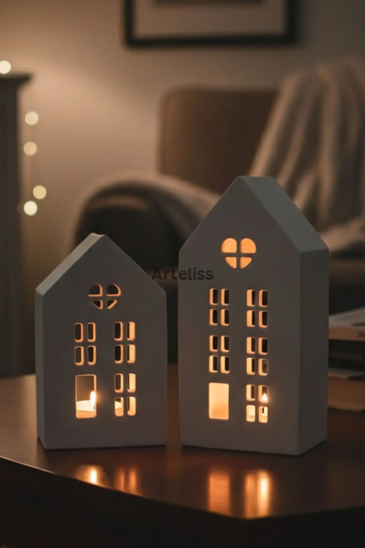 İçerisine yerleştirilen mum veya LED aydınlatmalar sayesinde pencerelerinden süzülen yumuşak ışık, bu ev hediyesi tasarımını yaşam alanlarında huzurlu bir derinliğe dönüştürür. Mat beyazın zarafetiyle her türlü dekorasyon stiline uyum sağlayan bu ev hediyesi grubu, heykelsi duruşuyla gündüzleri de estetik bir dekor sunar. Yeni eve taşınanlar veya evinde farklılık arayanlar için hazırlanan bu ev hediyesi koleksiyonu, pencerelerinden yansıyan kalpli ışık süzmeleriyle akşamlarınıza mistik bir hava katar. El işçiliğinin pürüzsüz kalitesini yansıtan bu özel ev hediyesi seti, her detayında "tek ve benzersiz" olma özelliğini koruyan seçkin bir tasarımdır.