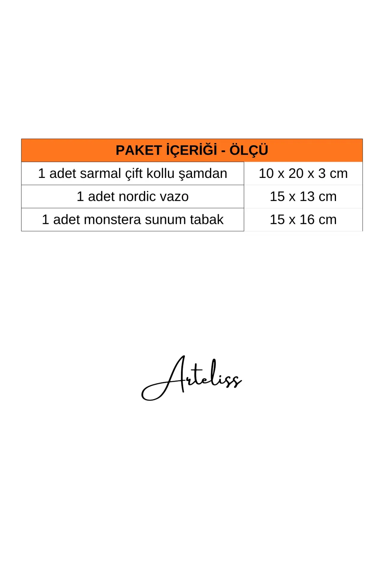 Görsel bir denge noktası oluşturmak için tasarlanan bu Modern Ev Aksesuarları seti, kıvrımlı hatlarıyla mekanın enerjisini anında değiştirir. Minimalist pampaslar veya taze çiçeklerle birleştiğinde eforsuz bir şıklık sunan bu Modern Ev Aksesuarları seti tasarımı, heykelsi şamdanı sayesinde akşamlarınıza büyüleyici bir ışık katar. Yaşam alanlarında net formların ve doğadan ilham alan detayların peşinde olanlar için hazırlanan bu Modern Ev Aksesuarları seti koleksiyonu, yaprak formuyla sofralarınıza ve konsollarınıza organik bir dokunuş ekler. El işçiliğinin pürüzsüz kalitesini her detayda hissettiren bu özel dekorasyon seti, her parçasıyla "tek ve benzersiz" bir estetik deneyim vaat eder.