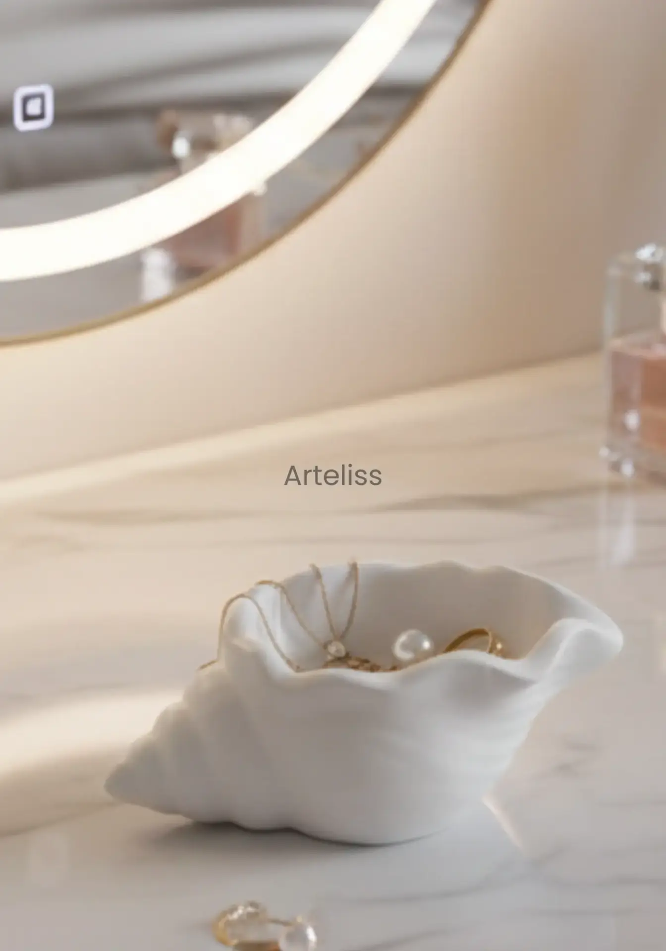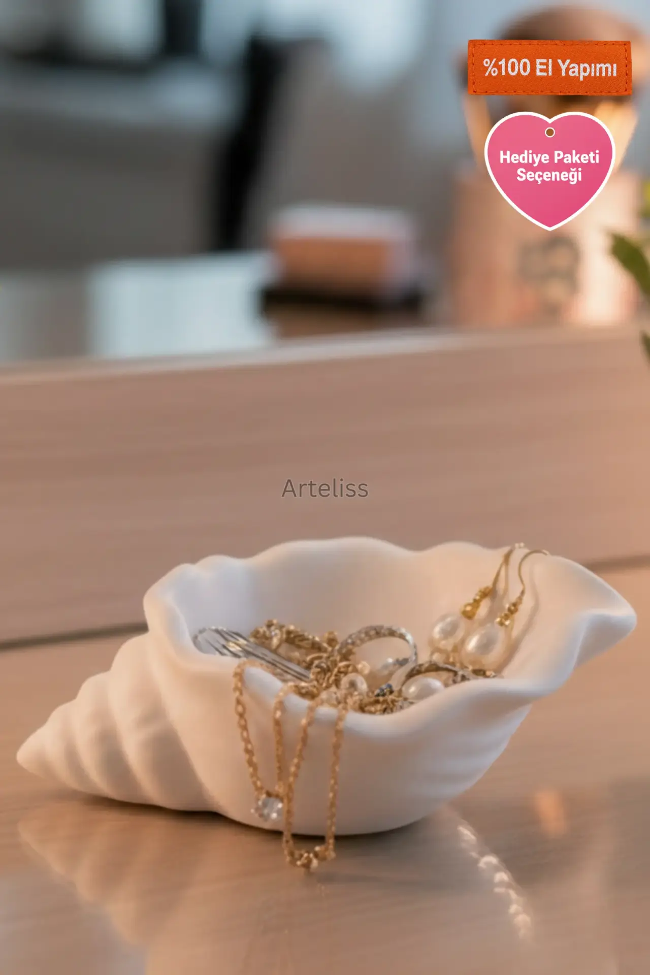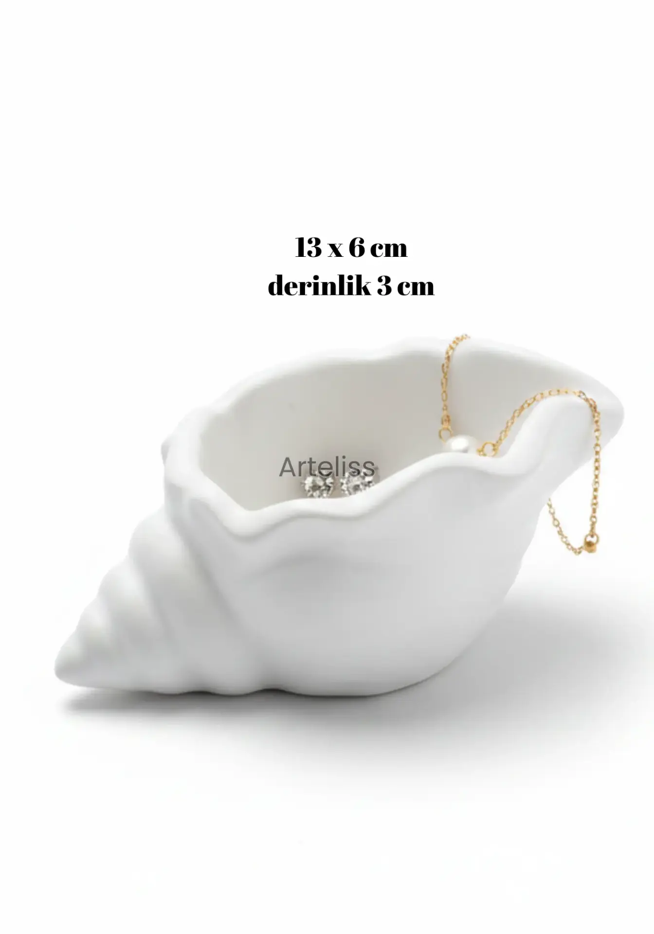 Arteliss® Luxury Shell estetik mini Dekoratif Takı Tabağı obje, okyanusun en narin formunu lüks ve modern bir tasarımla birleştirerek yaşam alanlarınıza taşır. Standart organizerlerin aksine, daha geniş ve derin iç hacmiyle öne çıkan bu dekoratif takı tabağı, sadece yüzüklerinizi değil; kolye, bileklik ve saat gibi daha büyük aksesuarlarınızı da güvenle muhafaza etmeniz için tasarlanmıştır. Mat beyazın asaletini taşıyan pürüzsüz dokusuyla bu tasarım, evinizin her köşesinde sofistike bir duruş sergiler.
