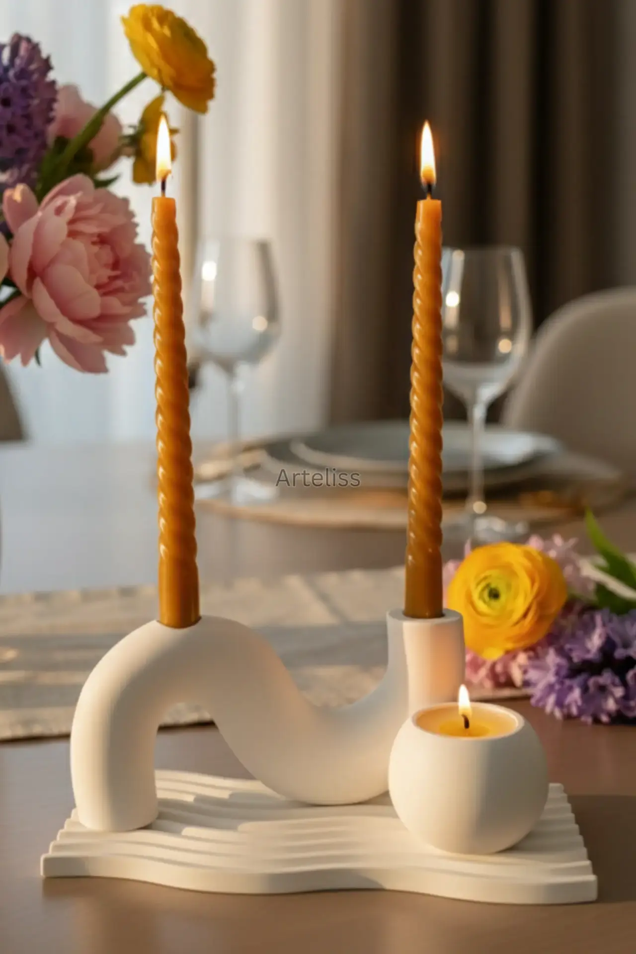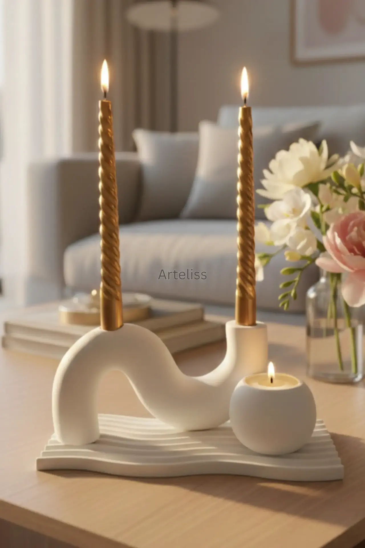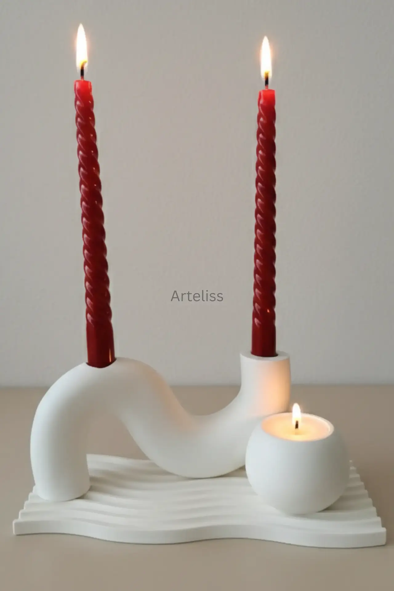 Akışkan Formlar ve Sanatsal Aydınlatma Modern Mumluk Seti