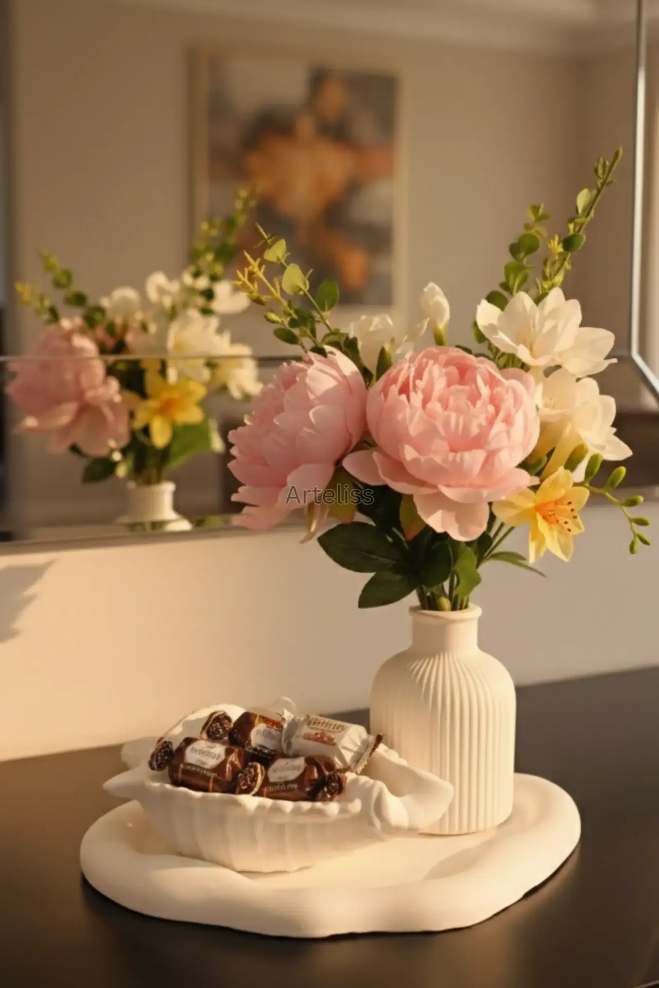 Bakım Önerisi: Ürününüzün formunu koruması için lütfen suyla direkt yıkamayınız. Temizlik için hafif nemli veya kuru bir bezle tozunu almanız yeterlidir. (Görsellerdeki çiçekler temsilidir.)