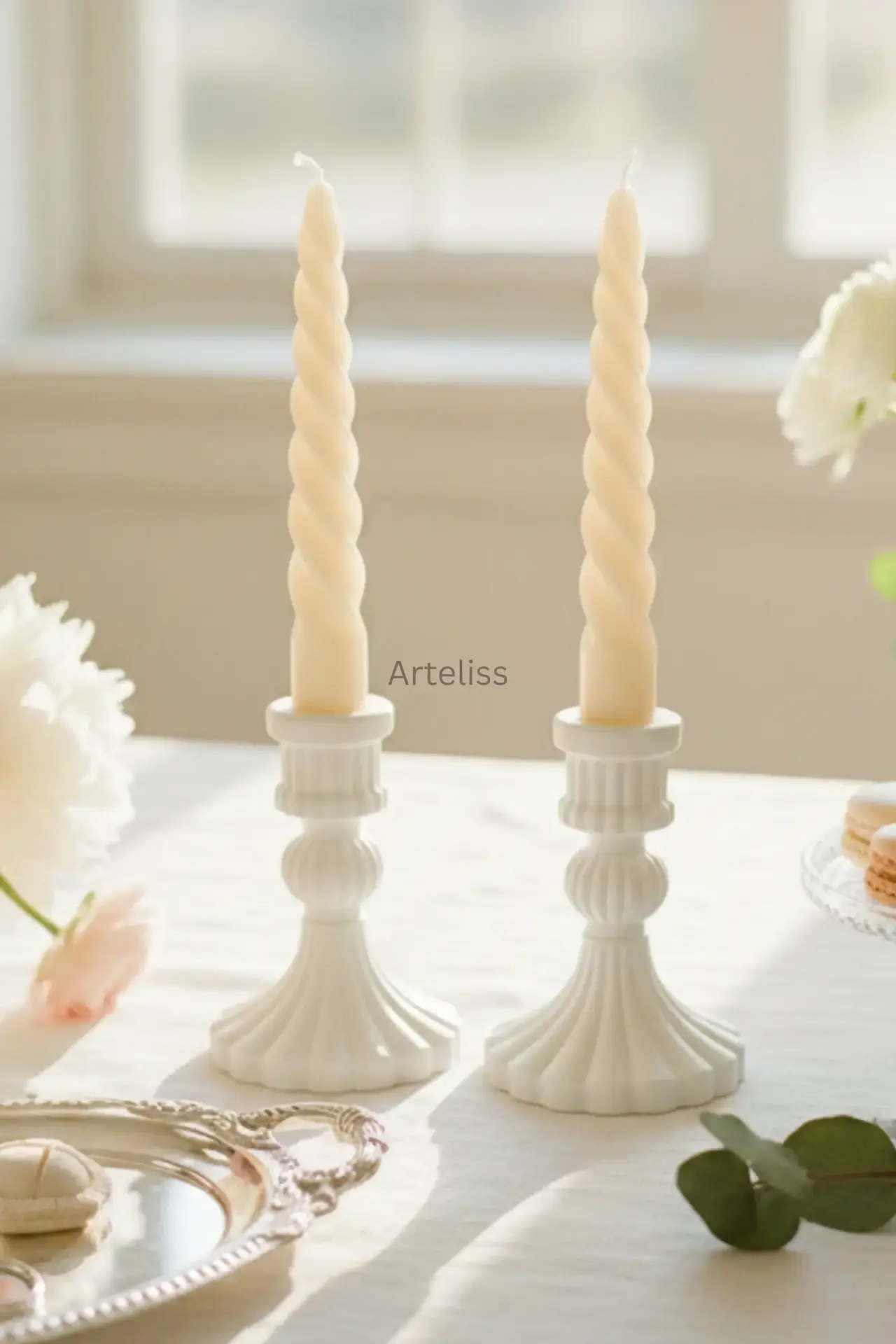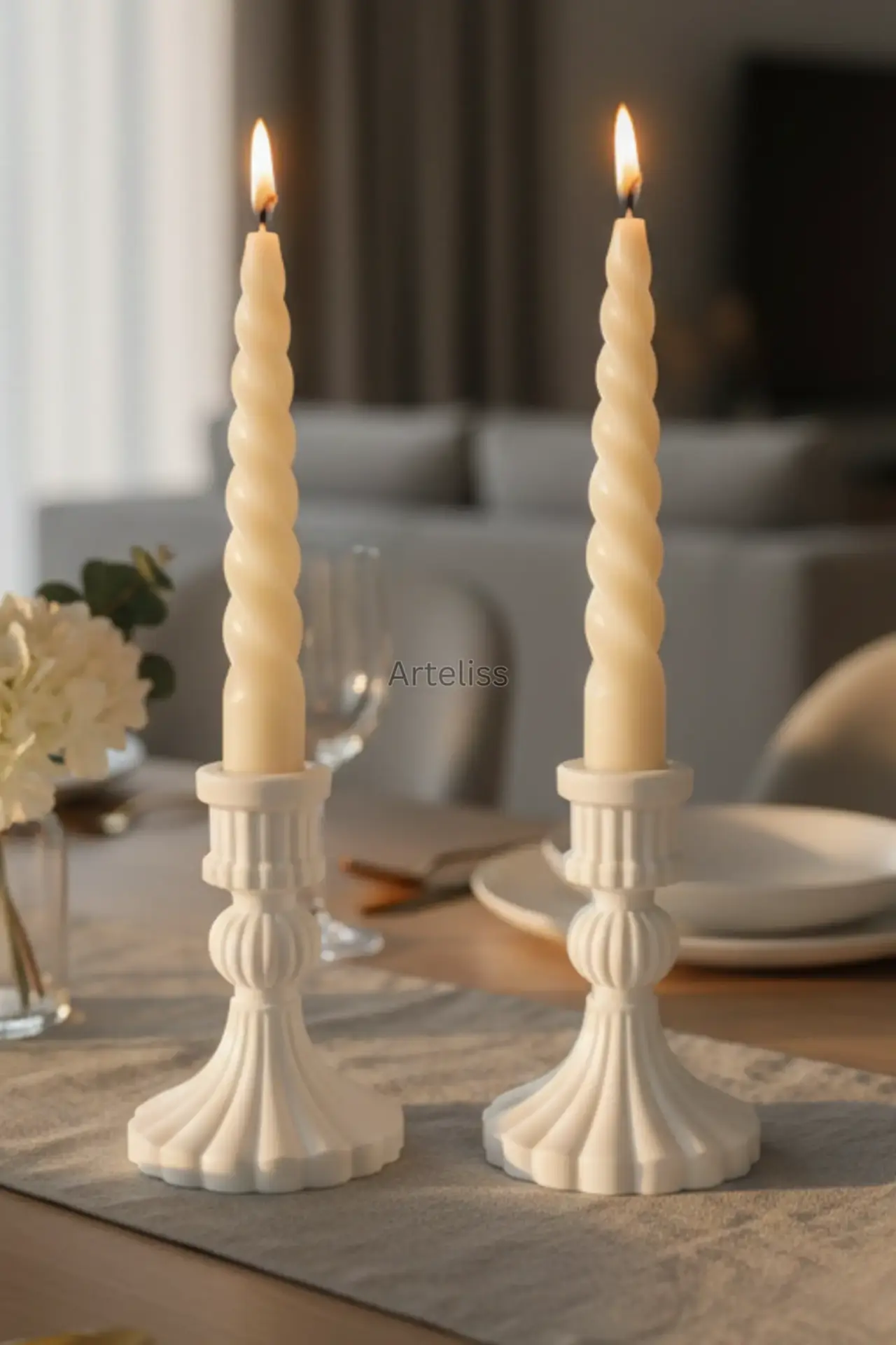 Çapı 2 cm olan standart şamdan mumlarıyla tam uyum sağlayan bu vintage mumluk seti, minimalist beyaz dokusuyla antik formları modern bir dille yeniden yorumlar. Hem romantik akşam yemeklerinizde hem de salonunuzun en şık köşesinde kullanabileceğiniz bu vintage mumluk seti, asil duruşuyla dekorasyonunuzun vazgeçilmez bir parçası olacaktır.